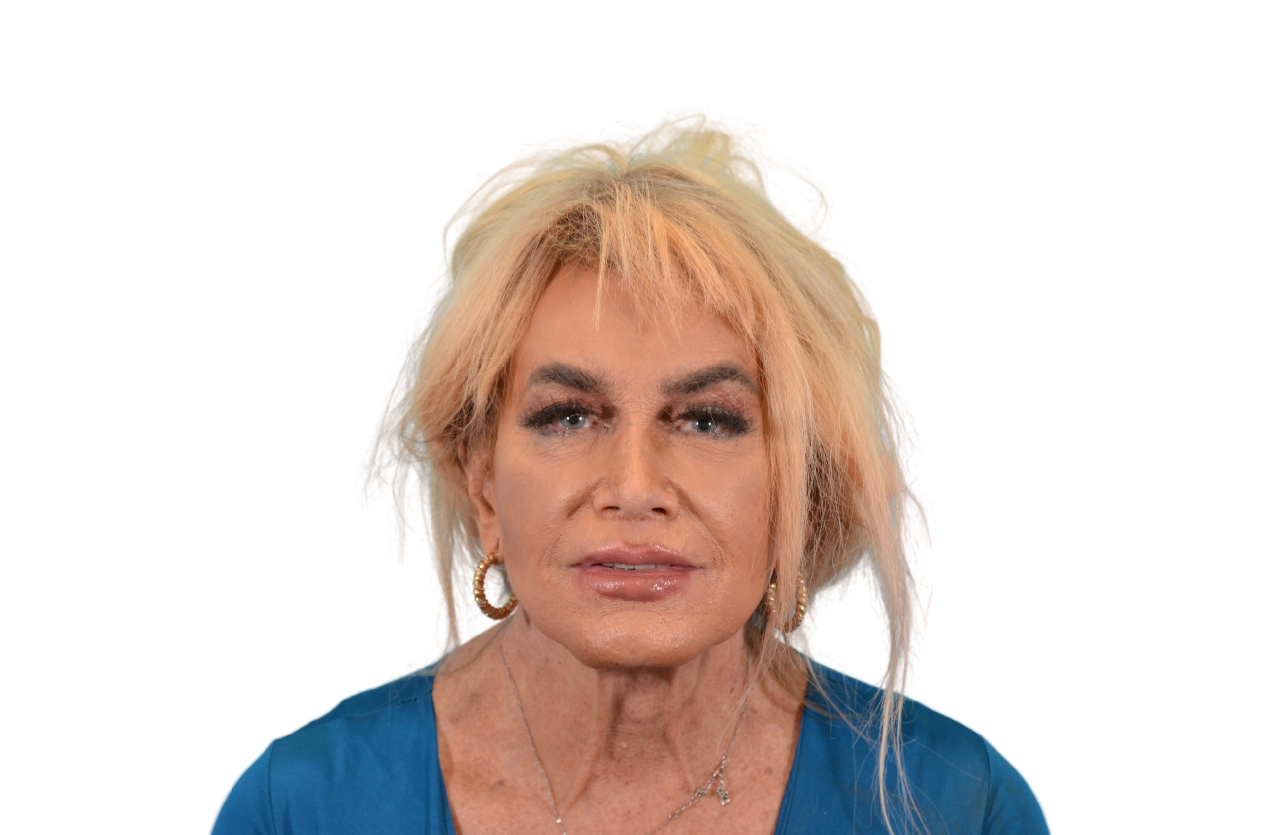 Her transformation involved a thoughtfully coordinated combination of procedures, including forehead contouring, jaw and chin reshaping, and a tracheal shave to harmonize her profile. She also had a brow lift, upper lip lift, and a revision rhinoplasty.